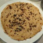 Zwiebeln kleinschneiden/hacken. Den Pfannenkuchenteig wie oben beschrieben in die Pfanne geben und die rohen Zwiebeln oben drauf streuen.